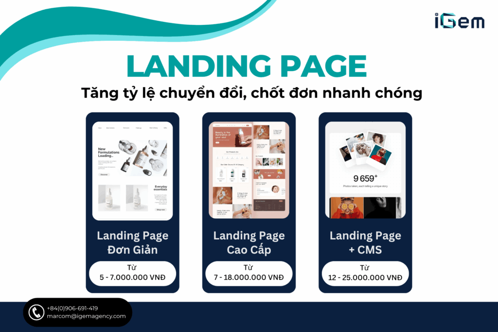 Nếu bạn đang chạy quảng cáo hoặc cần một trang đích chuyên dụng cho chiến dịch marketing, Landing Page là lựa chọn hoàn hảo. Với mức giá chỉ từ 3 – 20 triệu đồng, bạn có thể chọn: